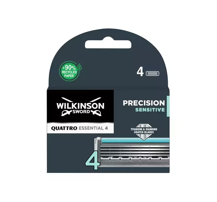 Opakowanie zawiera 4 zapasowe ostrza do maszynki Wilkinson Sword Quattro Essential 4 Precision Sensitive.