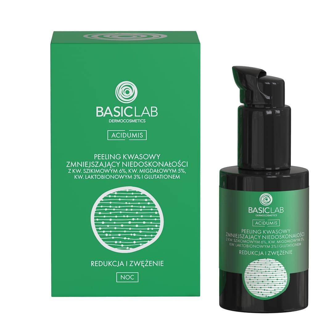 Peeling kwasowy zmniejszający niedoskonałości z 6% kwasem szikimowym, 5% kwasem migdałowym, 3% kwasem laktobionowym oraz dwoma silnymi antyoksydantami, glutationem i resweratrolem przyczynia się do kompleksowego działania pobudzającego skórę do odnowy i regeneracji, głębokiego oczyszczenia porów oraz zniwelowania niedoskonałości i przebarwień. Skóra staje się wygładzona, rozświetlona i bardziej podatna na działanie składników aktywnych.