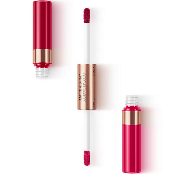 Pomadka w płynie o podwójnym wykończeniu, matowym i z połyskiem.
