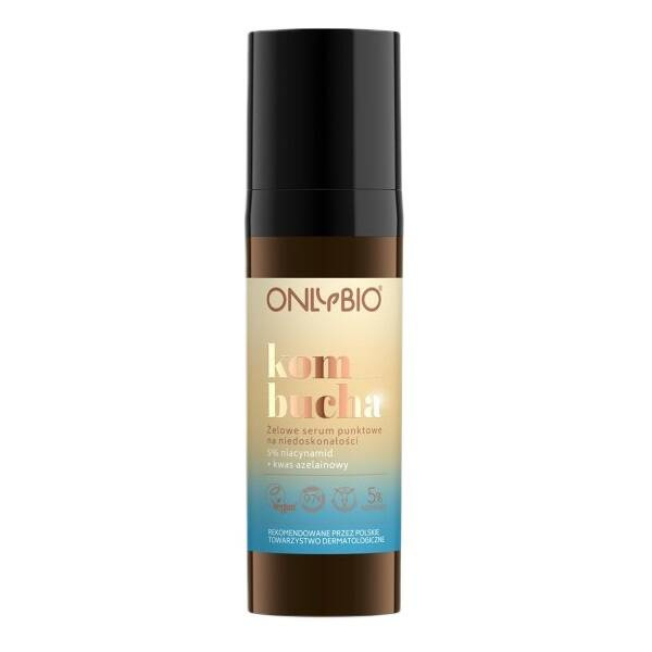 W składzie serum znajduje się nie tylko wyjątkowa kombucha, ale także wysokie stężenie niacynamidu (5%), który działa przeciwzapalnie. Zmniejsza widoczność wyprysków, przebarwień i blizn, jednocześnie wyrównując koloryt skóry. Dodatkowo do serum dodano kwas azelainowy, który łagodzi zmiany zapalne i przyspiesza regenerację skóry.