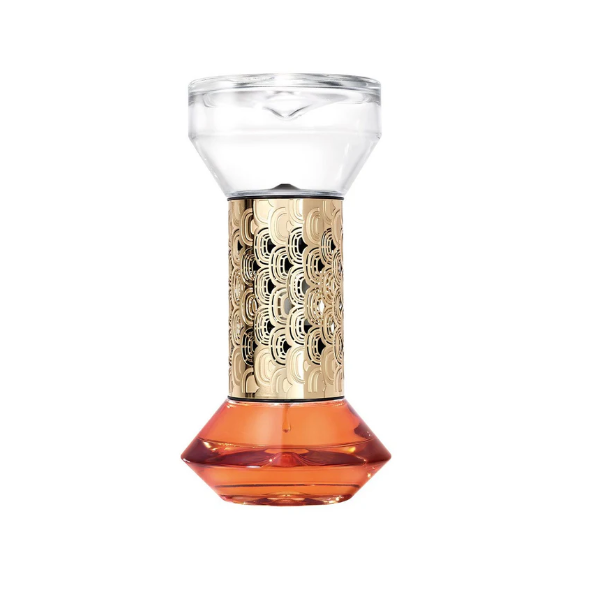 Interludium poza granicami czasu. Z złoconych spiral na dyfuzorze Diptyque w kształcie klepsydry wyłania się subtelny korowód cierpkich, korzennych nut drzewa pomarańczowego. Perfumy przepływają powoli z jednej szklanej przegrody do drugiej, delikatnie uwalniając swój zapach. Zanurz się na chwilę w magicznej aurze Fleur d'Oranger - zapachu kwiatu pomarańczy.