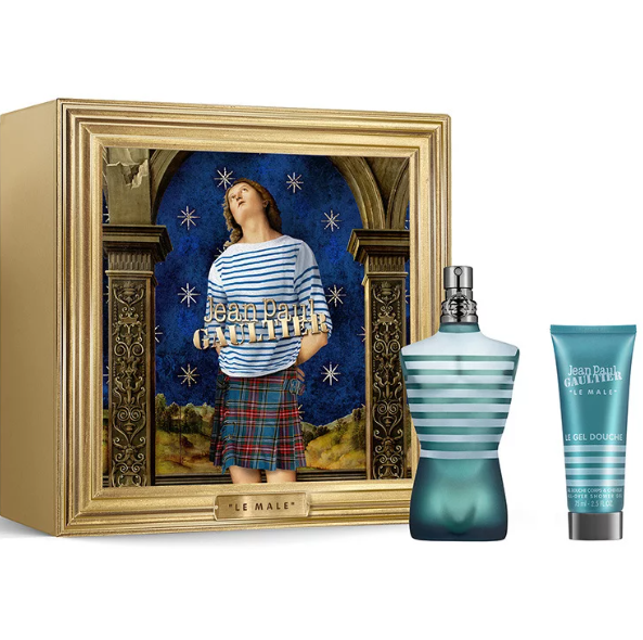 Jean Paul Gaultier zabiera Cię do świata sztuki z zestawem upominkowym Le Male. Z inspiracji magią, mistrz Gaultier na nowo interpretuje Świętego Sebastiana Perugina, nadając mu aurę ponadczasowej męskości. Elegancko ubrany w kilt i marynarski top, staje się symbolem niepowtarzalnego stylu. W złotej ramie pudełka skrywa się lazurowo-niebieska butelka, w której zamknięto zapach mięty, wanilii i lawendy. Idealny prezent dla każdego mężczyzny!