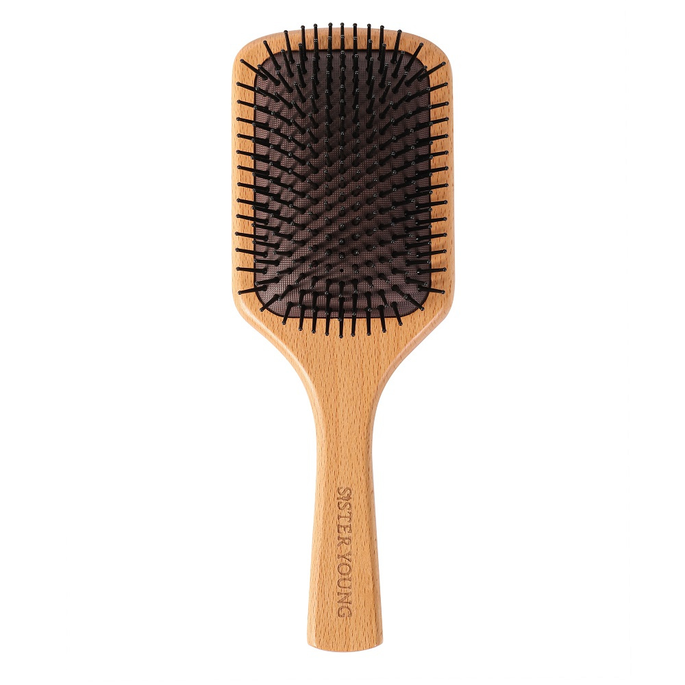 Drewniana szczotka wiosłowa typu paddle brush NAYA Sister Young do rozczesywania, suszenia i prostowania wszelkich rodzajów włosów, zwłaszcza tych grubych i gęstych. Wykonana została z włosia nylonowego oraz naturalnego drewna bukowego. Doskonale wygładza pasma i pozostawia je zdrowe i błyszczące.