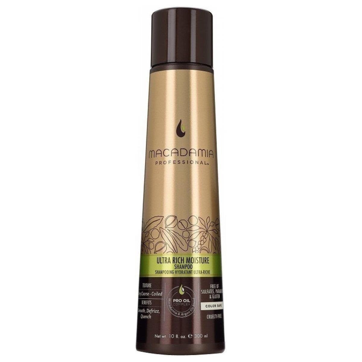 Ultra Rich Moisture Shampoo to nawilżający szampon do włosów od marki Macadamia Professional. Dzięki obecności mieszanki Pro Oil Complex, awokado i olejowi z afrykańskich orzechów mongongo doskonale nawilża włosy i skórę głowy. Wygładza włosy i zapobiega ich puszeniu się. Sprawia, że stają się miękkie w dotyku. Zawiera absorbenty promieni UVA/UVB, które pomagają włosom zachować kolor.