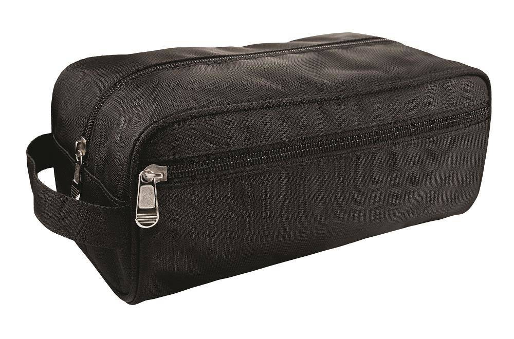 Praktyczna, elegancka kosmetyczka wykonana z czarnej, wytrzymałej tkaniny. Gustowne połączenie klasyki i funkcjonalności. Dodatkowe, zewnętrzne i wewnętrzne kieszenie ułatwiają porządkowanie kosmetyków i akcesoriów.