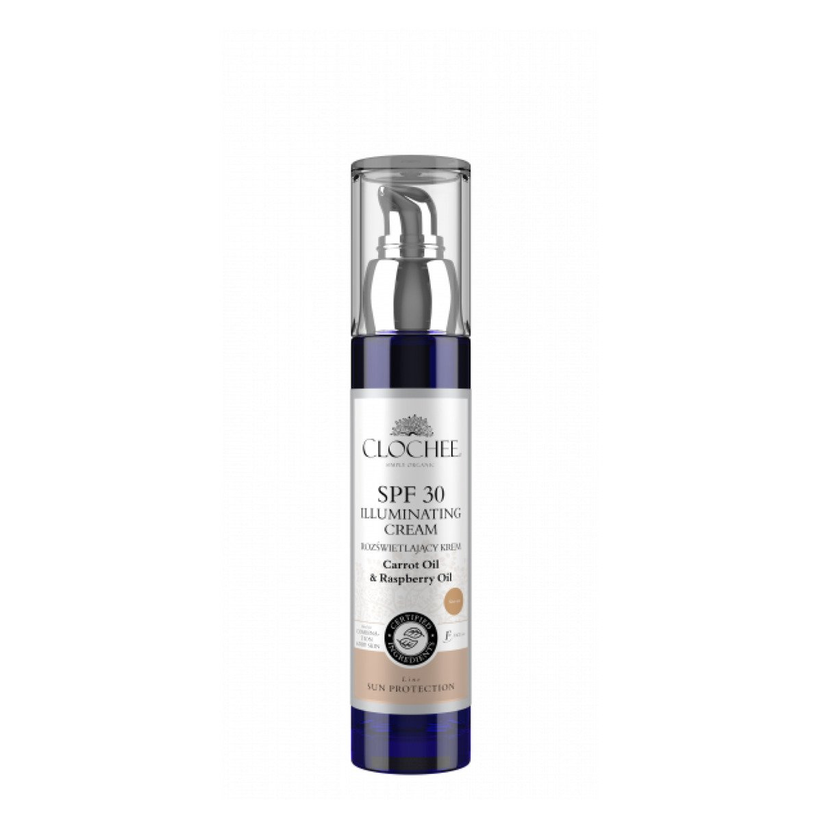 Krem rozświetlający zawiera dwa odżywcze oleje – olej z pestek malin i olej z marchewki. Substancje aktywne zapewniają ochronę przed działaniem wolnych rodników, pomagając opóźnić proces starzenia się skóry.
