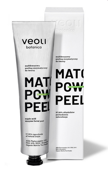 Multikwasowy peeling enzymatyczny z aktywnym kompleksem AHA Phytocomplex 10%, PHA 10%, BHA oraz ze sproszkowaną, organiczną zieloną herbatą matcha w formie ekspresowej maski. AHA Phytocomplex 10% – kompozycja naturalnych kwasów owocowych (cytrynowy, mlekowy, winowy) oraz bromelaina – enzym pozyskiwany z ananasa, natychmiastowo złuszczają, wygładzają i rewitalizują skórę twarzy oraz skutecznie usuwają martwe komórki naskórka, wyrównując koloryt i zmniejszając widoczność porów. Dzięki zawartości BHA kwasu salicylowego peeling reguluje wydzielanie sebum, działa matująco, a także zmniejsza zaczerwienienia skóry towarzyszące niedoskonałościom. PHA (glukonolakton) skutecznie redukuje przebarwienia, pozostawia skórę ukojoną i jedwabiście gładką. Matcha pochodząca z organicznych upraw herbacianych w Japonii oraz roślinny retinol (bakuchiol) działają detoksykująco, stanowiąc silną ochronę antyoksydacyjną, regenerują skórę, przywracając jej jędrność i promienny wygląd. Peeling idealnie nadaje się skóry pozbawionej blasku, z widocznymi nierównościami i przebarwieniami, w tym do wrażliwej.
